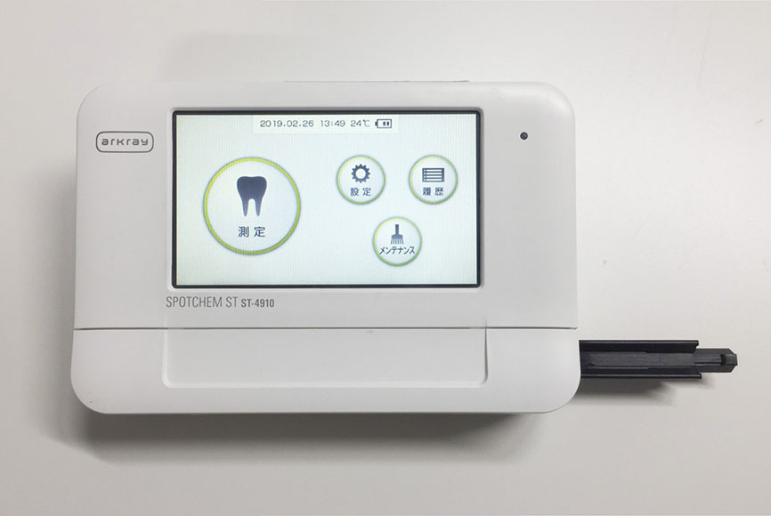 当診療所では一回の検査であなたの歯の健康度合い、お口の清潔さ、歯ぐきの健康度合いが簡単に測定できる検査装置を導入しております。