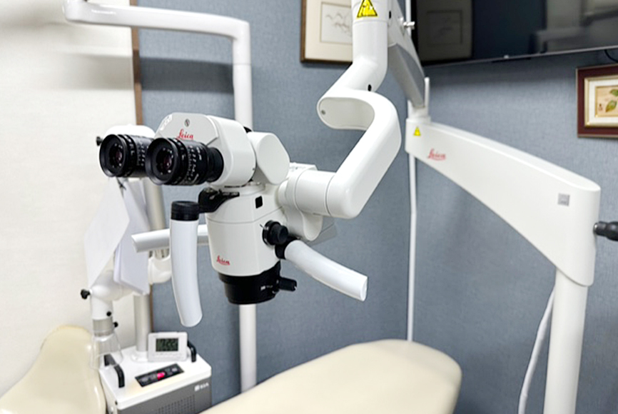 マイクロスコープは肉眼に比べて患部を約25倍に拡大できるため、主により精密な治療が求められる根管治療に用います。