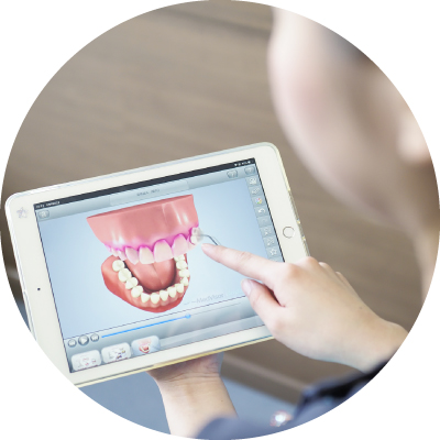 インプラント治療を行うためには、歯が失われた部分の骨だけでなく、残された歯のむし歯や歯ぐき、噛み合わせの検査も行います。レントゲンやCTで画像診断後、インプラント治療ができるかどうかを含め、シミュレーションを行い、安全に治療が進められるようにガイドを作成します。